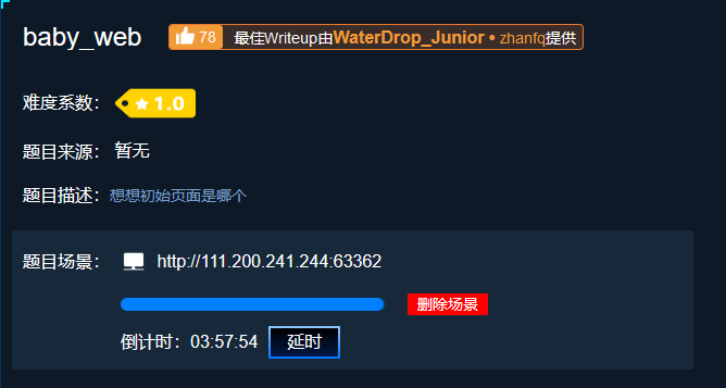 进入题目场景后,根据题目描述,首先需要注意URL的内容,果然,访问的页面为1.php