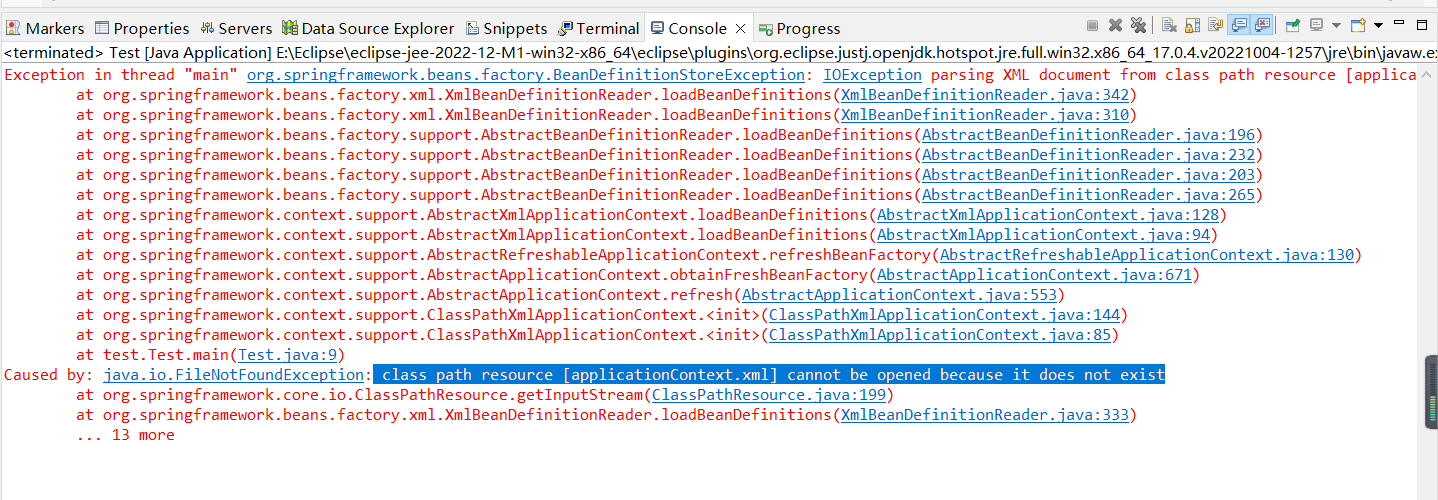 初学Spring在使用ApplicationContext appCon = new ClassPathXmlApplicationContext("applicationContext.xml");遇到的问题: