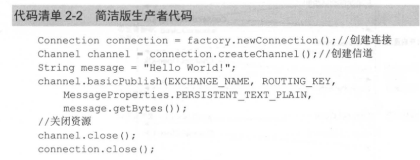 当客户端发送消息的时候,需要调用channel.basicPublish方法,对应的AMQP命令为Basic.Publish,注意这个命令和前面涉及的命令略有不同,这个命令还包含了Content Header和Content Body。Content Header里面包含的是消息体的属性,例如投递模式,优先级,而Content Body包含消息体本身。