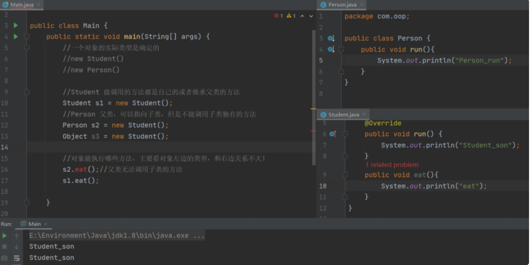 //((Student)person).eat();//第二种转换方法-强制