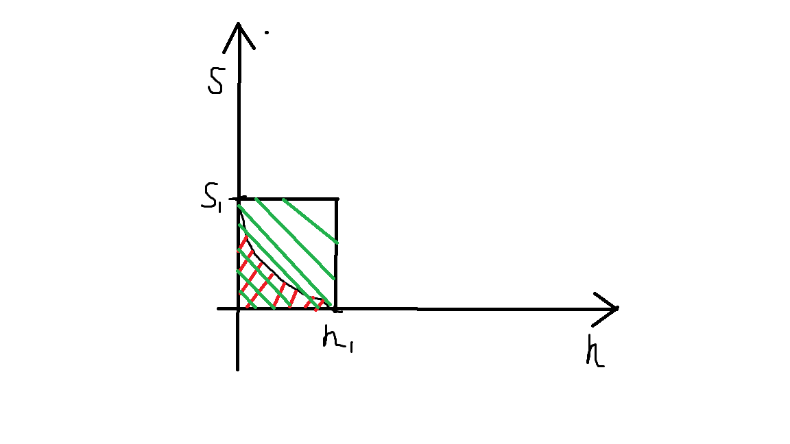 忽略小美画的斜斜的难看的图像(心不灵手不巧)。好啦,他现在已经得到了高为\(h\),底面积为\(S\)的一个规则的物体\(h-S\)图像,嗯······那么\(V\)的意义就是红色阴影的面积。