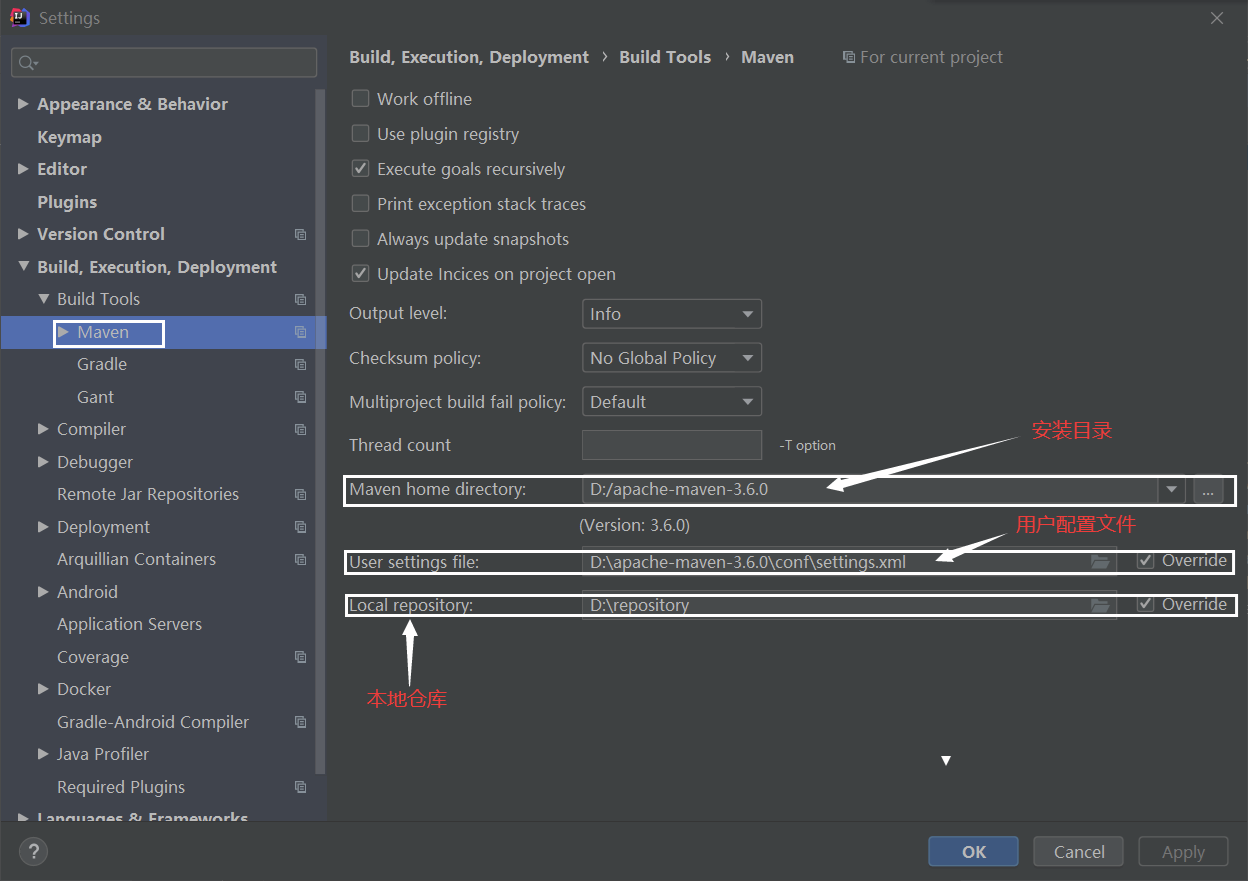 - path中,配置maven安装路径的\bin目录 例:(D:\apache-maven-3.6.0\bin)