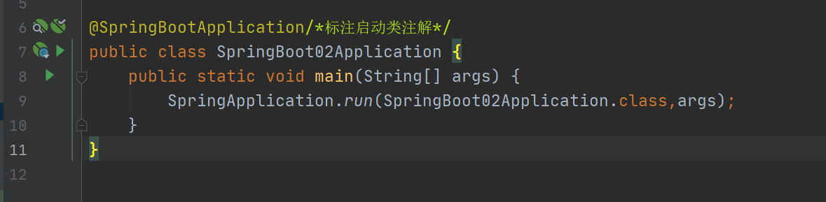 * 注解 @SpringBootApplication :标注SpringBoot的入口类,启动整个项目的入口,如下图