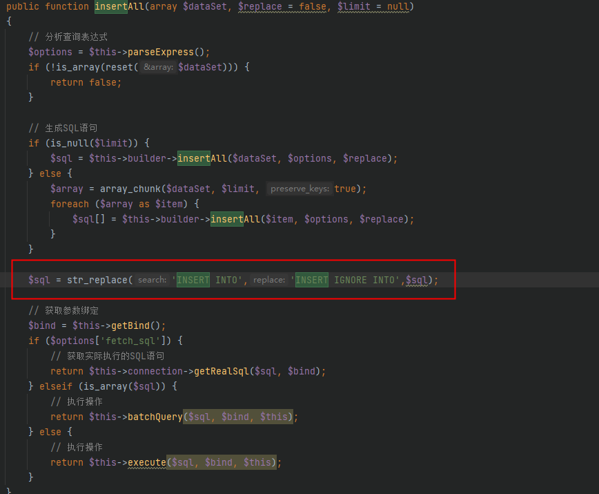 正常使用编辑工具的直接model()->insertAll()跳转到这里,没有的直接目录