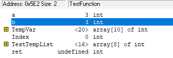 继续单步,可以看到初步对TestTempList赋初值,然后计算出ret的结果