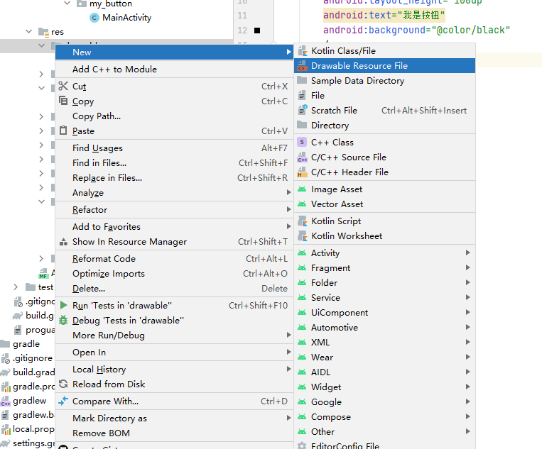 在drawable文件夹下新建DrawableResourceFile选择器文件