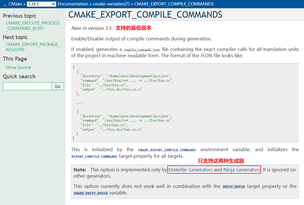 主要是由于CMAKE_EXPORT_COMPILE_COMMANDS这个命令起的作用,这个命令的约束如图: