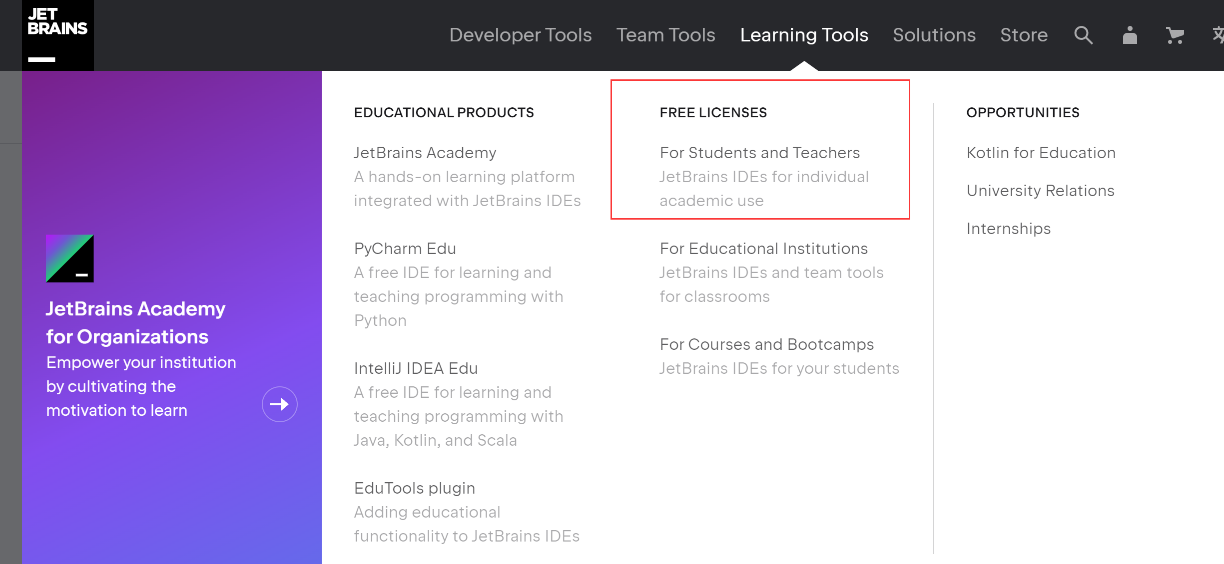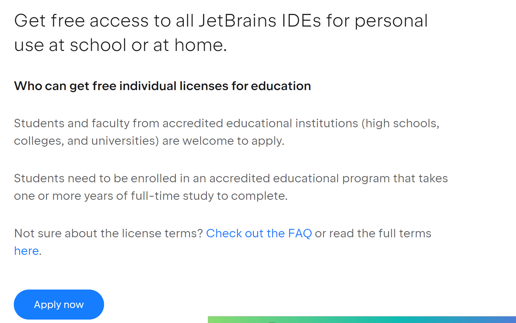 首先在JetBrain官网可以看到这个对于学生和教师是免费使用的