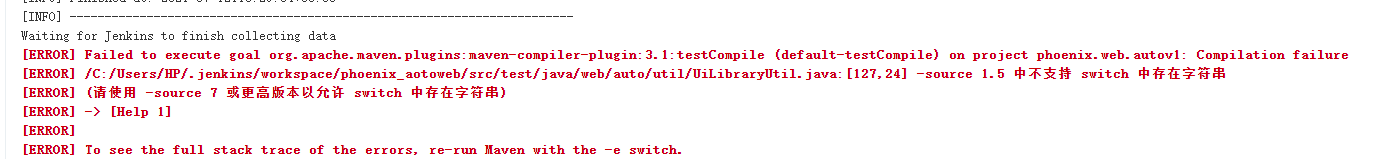 jenkins构建maven项目,提示1.5 中不支持 switch 中存在字符串