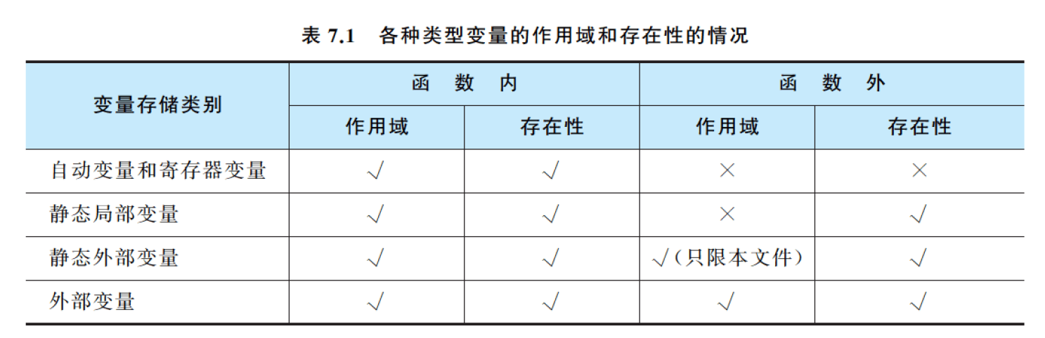2)静态局部变量不赋初值,编译时自动赋初值“0”(对数值型变量)或者空字符(对字符变量);