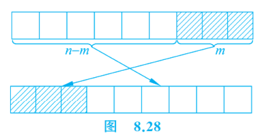 4、有n个整数,使前面各数顺序向后移m个位置,最后m个数变成最前面m个数,见图8.28。 写一函数实现以上功能,在主函数中输人n个整数和输出调整后的n个数。