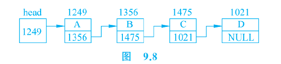 c.next=NULL; // c的next成员指向NULL