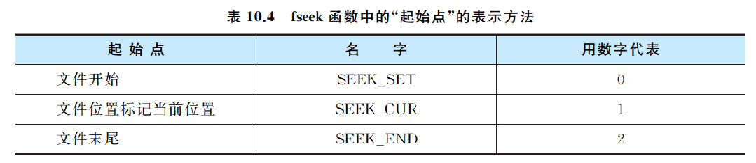 “位移量”指以“起始点”为基点,向前移动的字节数。C标准要求位移量是long型数据 (在数字的末尾加一个字母L,就表示是long 型 )。