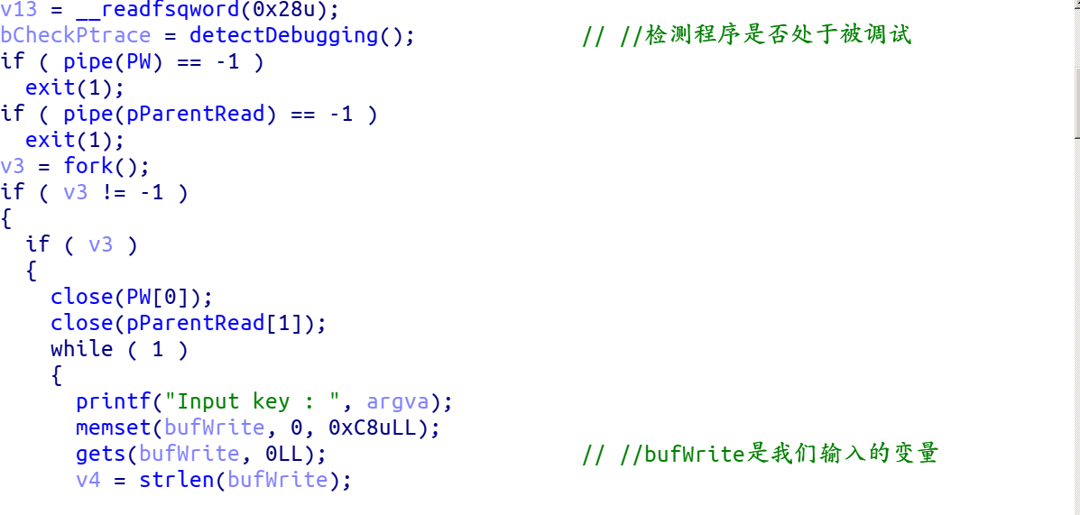 这是一个64位ELF文件。先放进IDA中查看伪代码了解程序的思路(代码看了半天)先分析一下主函数吧