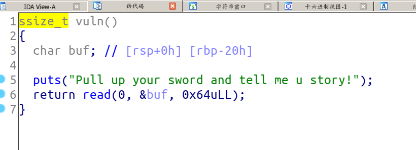 r.recvuntil("Pull up your sword and tell me u story!")