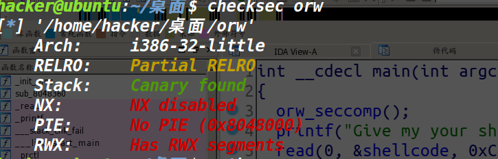 看见 RWX程序中开启了可读可写可执行。显然是写shellcode然后让程序执行。先然这道题的考点并不是在这。