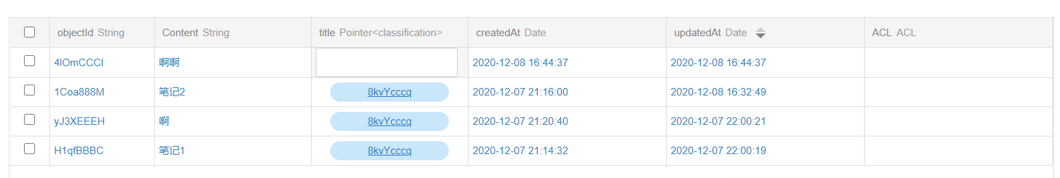 - 其中 aaa 的 objectId 为 8kvYcccq