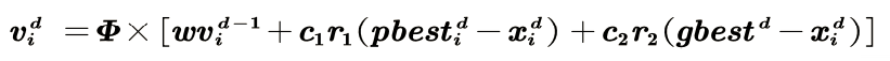 vid = wvid-1 + c1r1(pbestid-xid)+ c2r2(gbestd-xid)