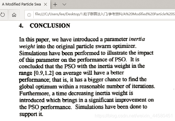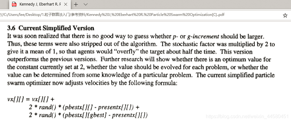 (注意:最初提出粒子群算法的这篇论文没有惯性权重)