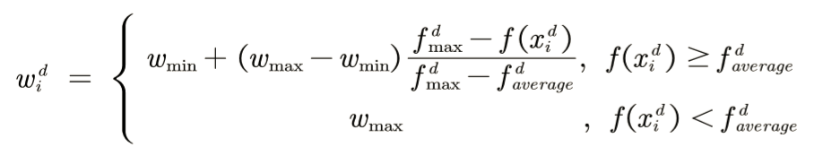 w = w_min + (w_max - w_min)*(f_max - f_i)/(f_max - f_avg);