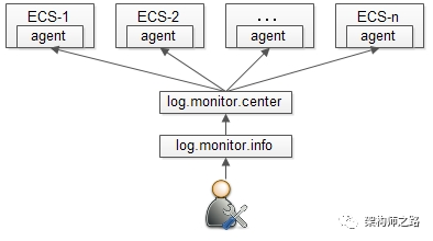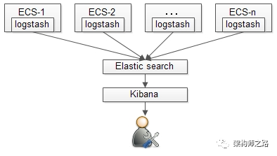 与集中式的日志监控相比,分散式的日志监控,就显得轻量级许多,非常适用与早期的创业型公司,其思路为: