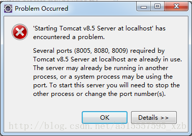 当Eclipse异常退出或在任务管理器中强制关闭时,重启Eclipse后会出现端口被占用的问题: