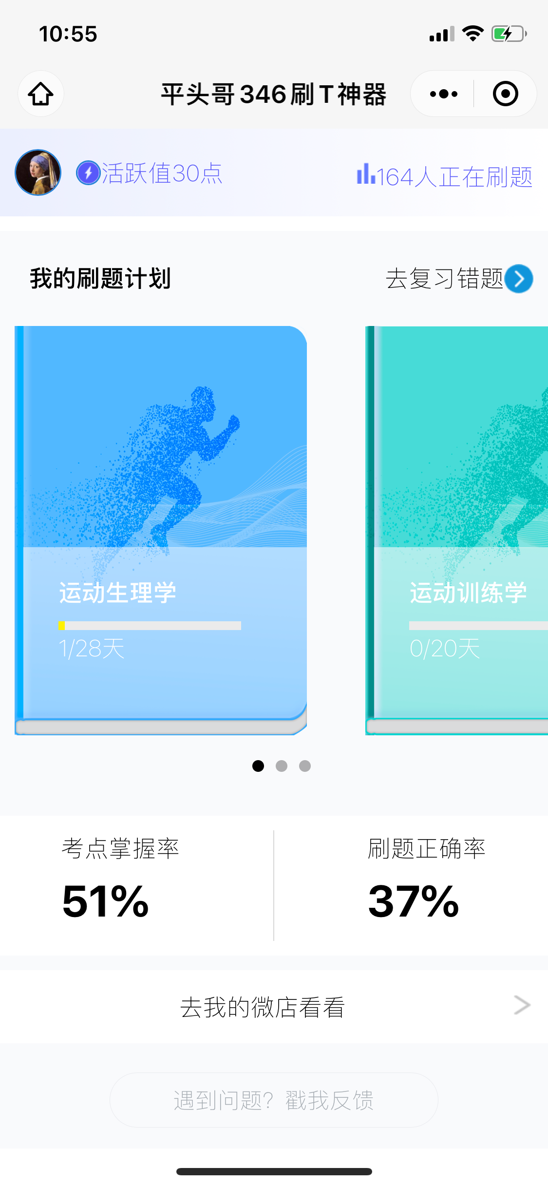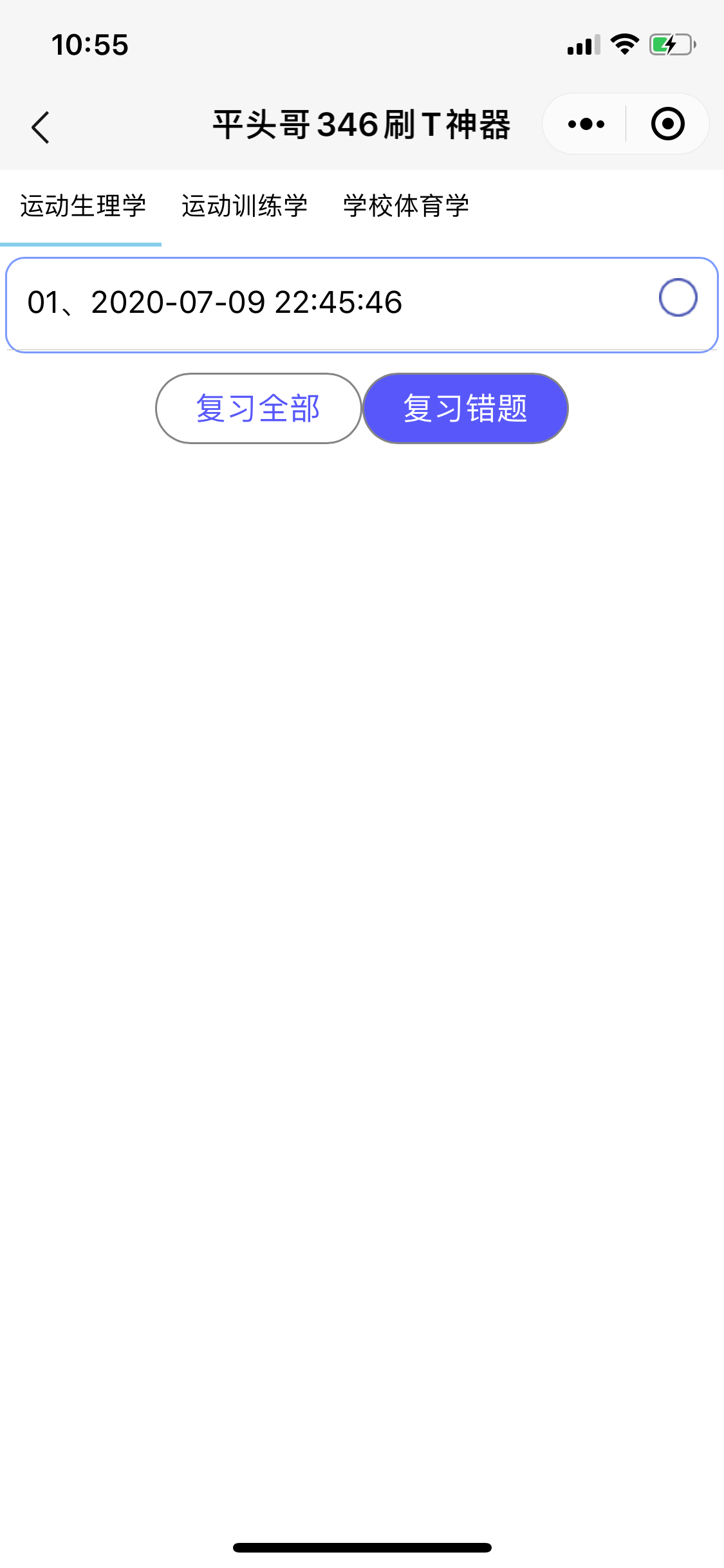 该小程序主要用于体育类考研学生刷题用,运营者本身是做线下考研培训的,现推出线上微信小程序用来辅助学生刷题,该小程序主要覆盖体育考研的三个科目