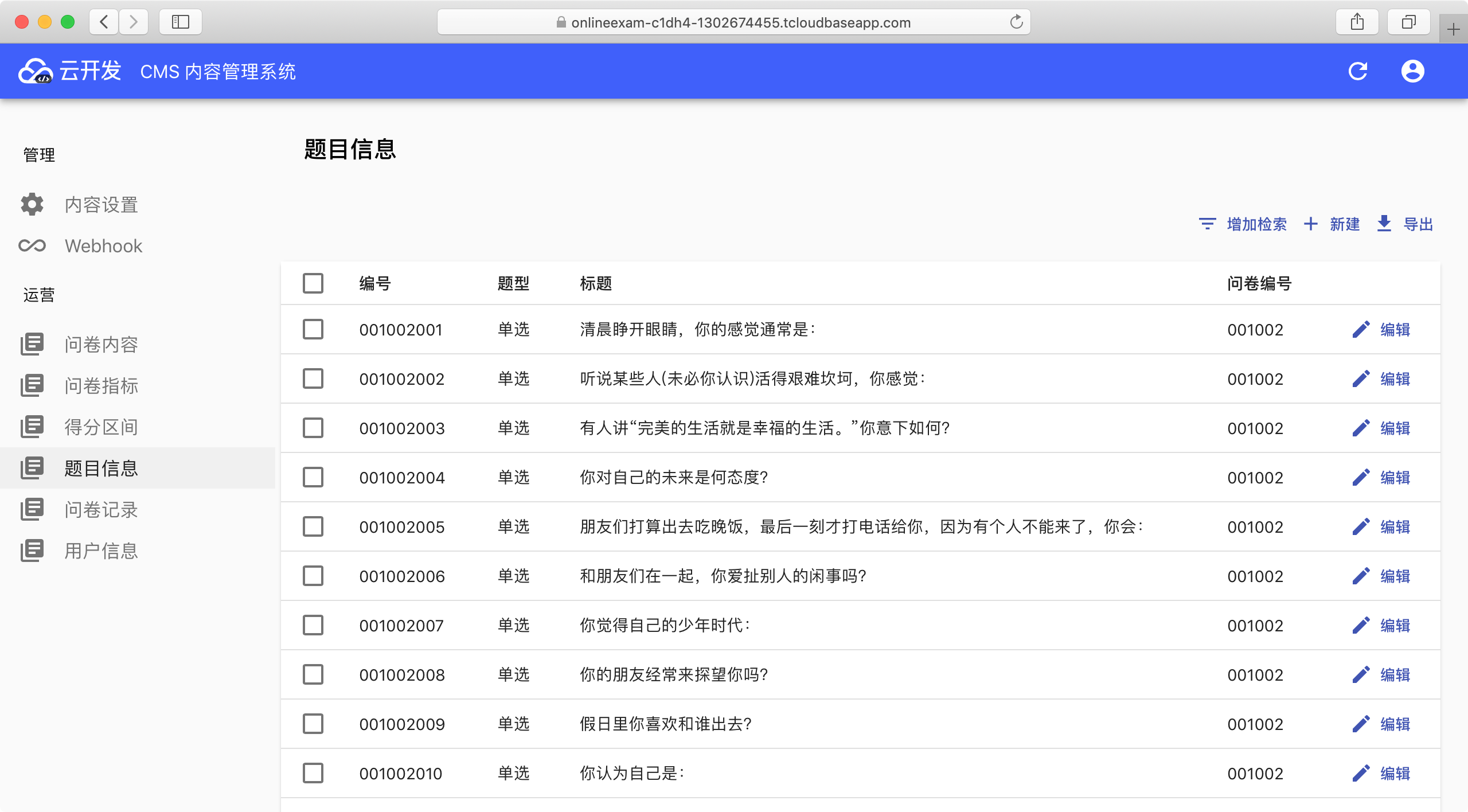 本文基于上一篇文章,上一篇文章我提到,我用一天的时间,把答题小程序改造成了问卷小程序,这篇文章主要讲述给这个小程序搭建云开发的内容管理系统,也就是云开发CMS,