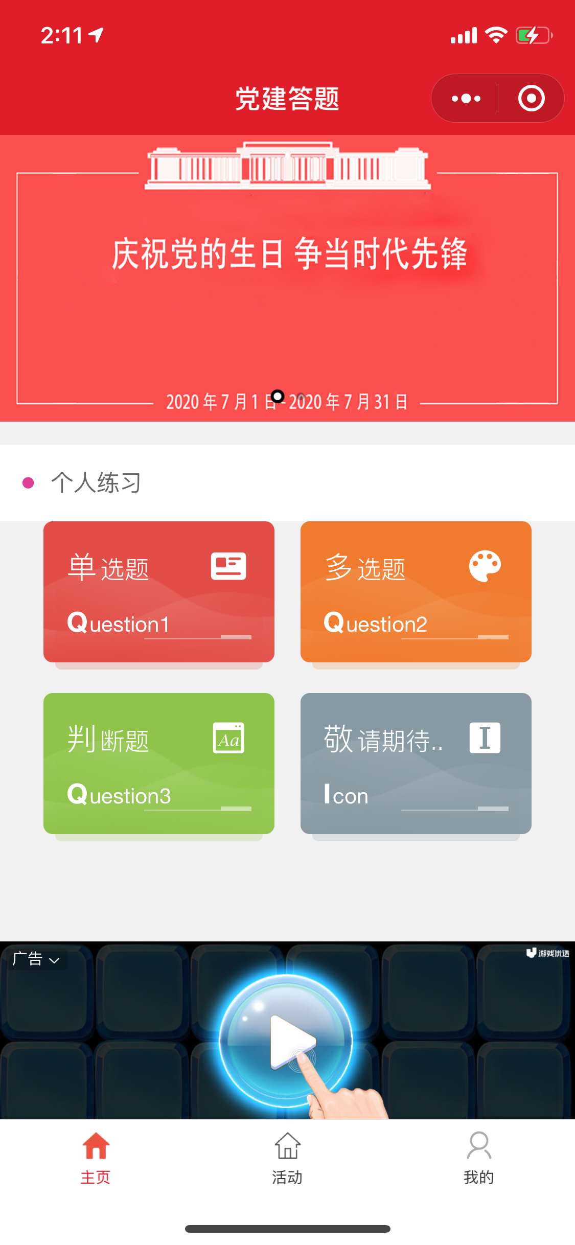 很多用户会存在障碍,最近我体验了一个党建答题的小程序,突然明白了滑动刷题的交互如何去设计,那就是区分题型