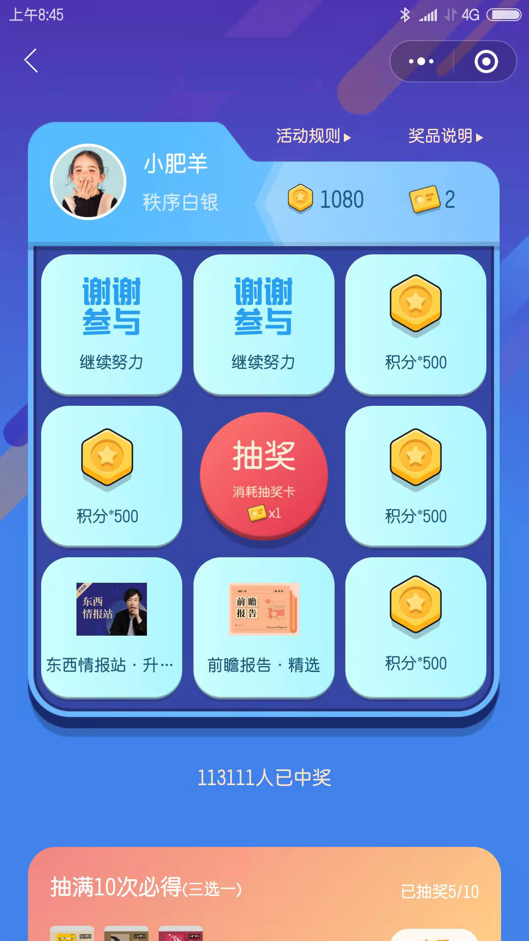 1.答题正确、胜利、晋级均可获得积分,积分可用于抽奖