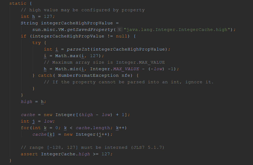 Integer i1 = 100; Integer i2 = 100; Integer i3 = 200; Integer i4 = 200; System.out.println(i1==i2); //true System.out.println(i3==i4); //false
