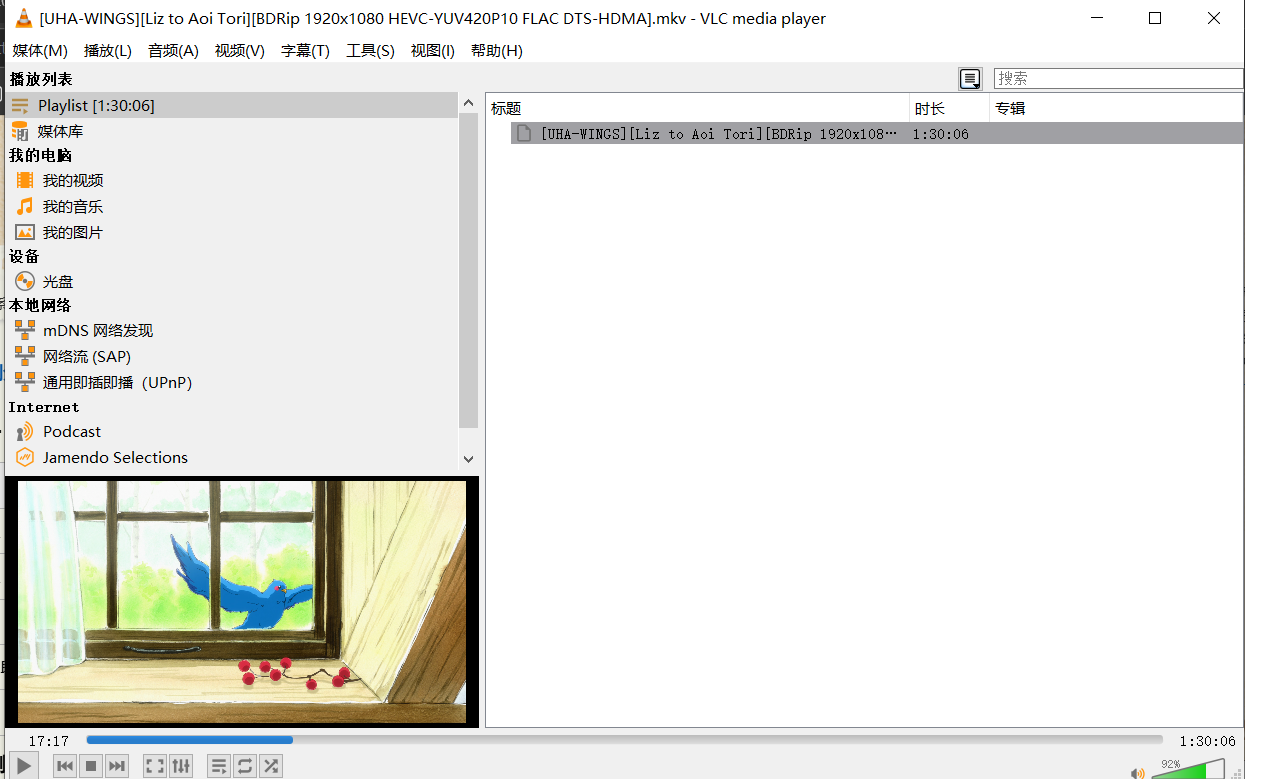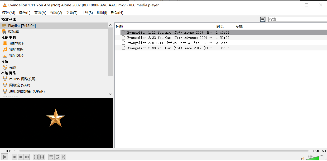 VLC播放器在选择播放目录时并不会直接用新的播放列表覆盖旧的播放列表,而是会选择将新的播放列表添加到旧的播放列表的末尾,如下图所示