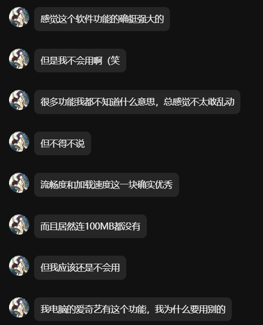 同时笔者的姐姐提出的观点:“我电脑的爱奇艺有这个功能,我为什么要用别的”也揭示了这样一个优秀的软件为什么知名度平平的原因——国内已经形成了视频播放器与在线视频软件高度相关的软件生态。尽管VLC功能强大,但事实上在线视频软件附带的播放器可以满足轻度用户绝大多数的需求,而这样的轻度用户才是互联网相关用户的大多数。