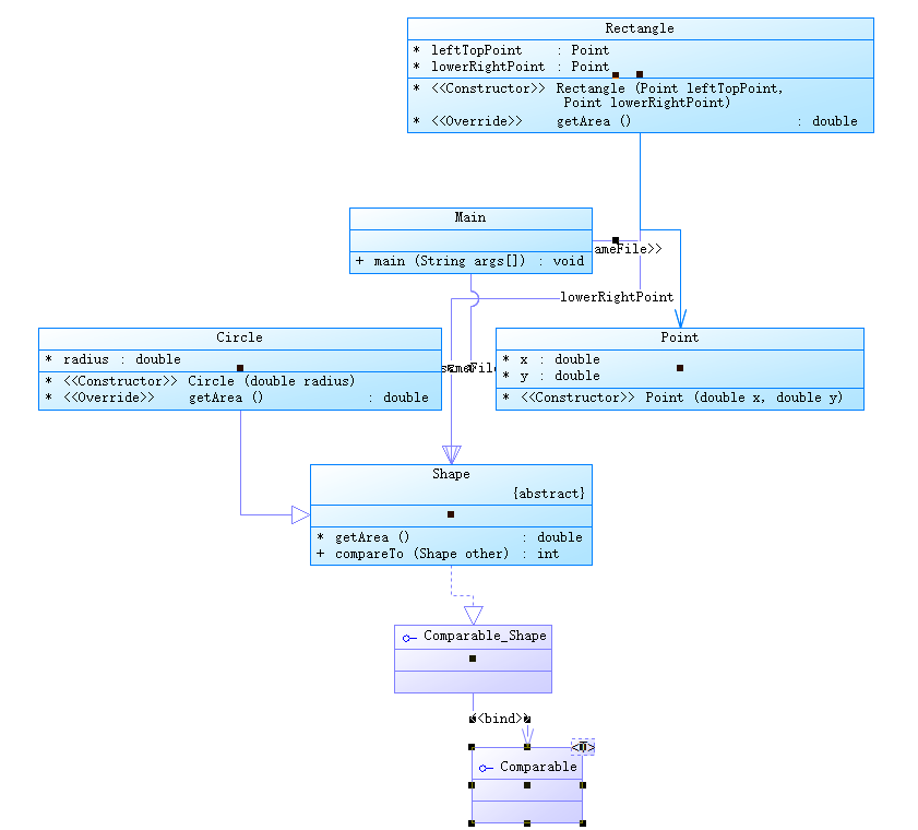 Shape 类,该类是其他图形类的父类,且 Shape 类实现了 Comparable 接口: