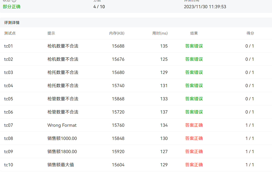 4)格式错误以及其他信息异常如成绩超出范围等,均按格式错误处理,输出"wrong format"