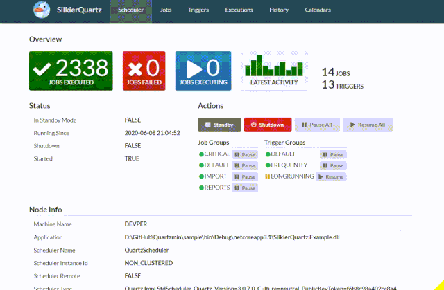SilkierQuartz 可以在你已有应用程序内可以通过最小改动的使用的Quartz.NET 并通过Asp.Net Core 3.1 中间件的方式创建 Web页面目录并且没有任何额外的内容。