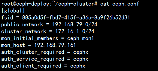 完成后执行:ceph-deploy new --cluster-network 172.16.1.0/24 --public-network 192.168.79.0/24 ceph-mon1.example.com