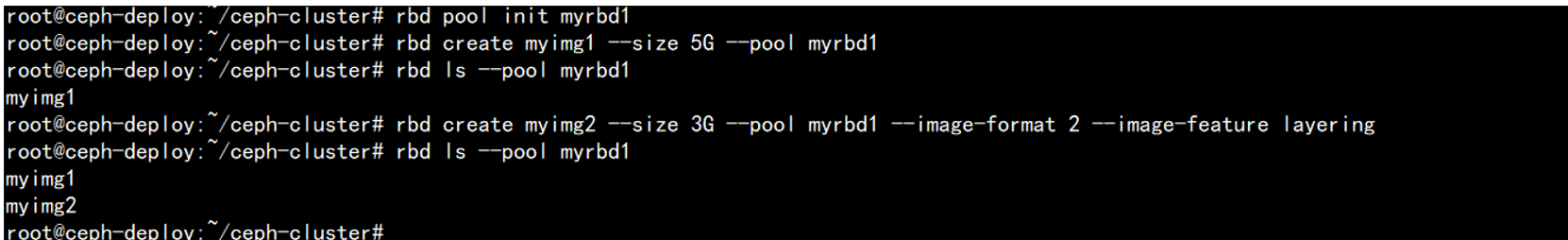 # rbd pool init -p myrbd1 #通过 RBD 命令对存储池初始化