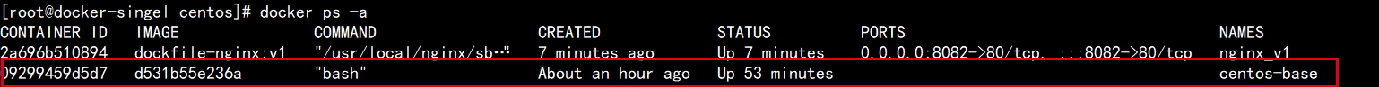 [root@docker-singel centos]# docker run -it --name=centos-base centos-base:v1 bash