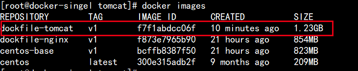[root@docker-singel tomcat]# docker build -t dockfile-tomcat:v1 .