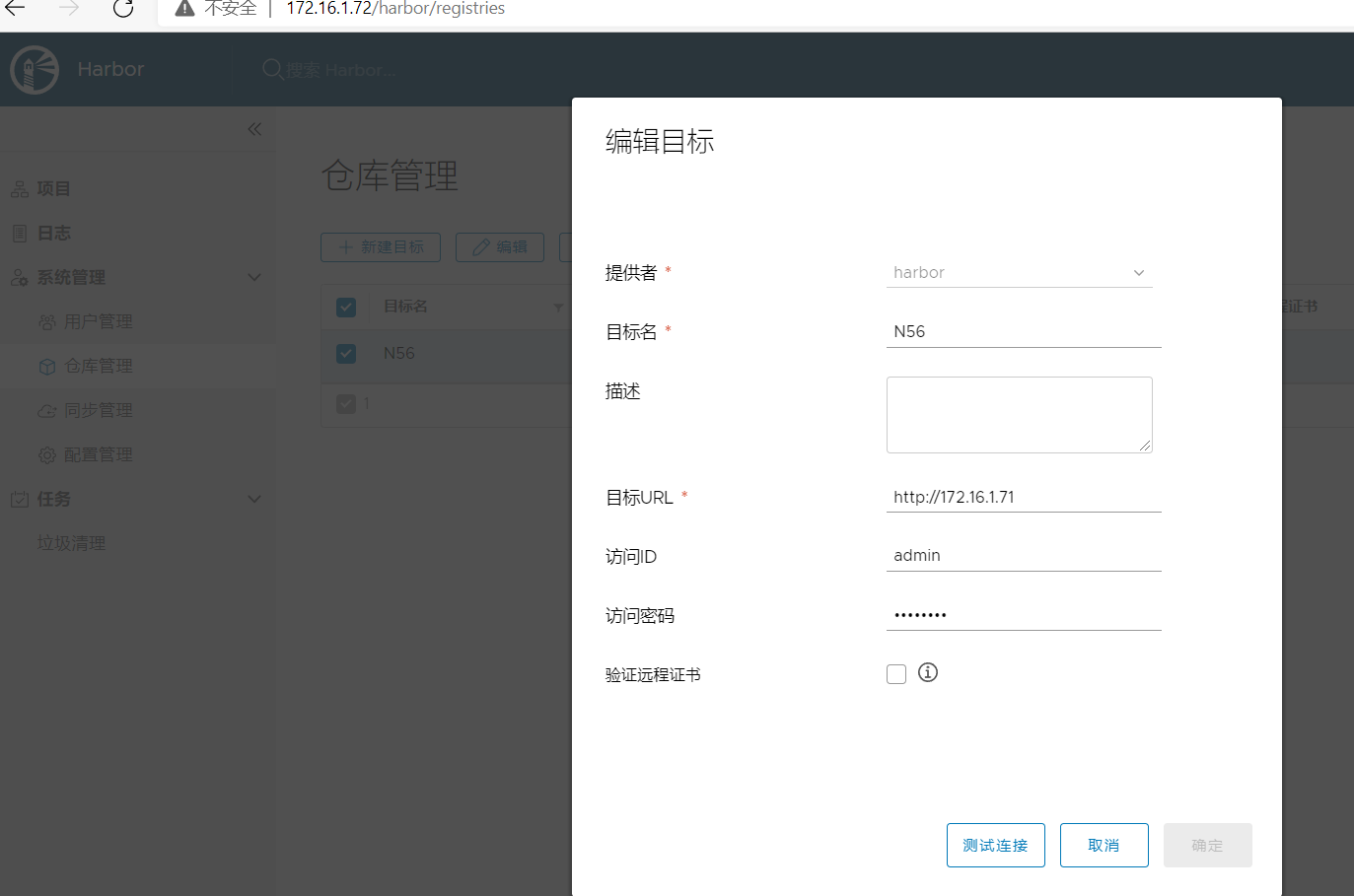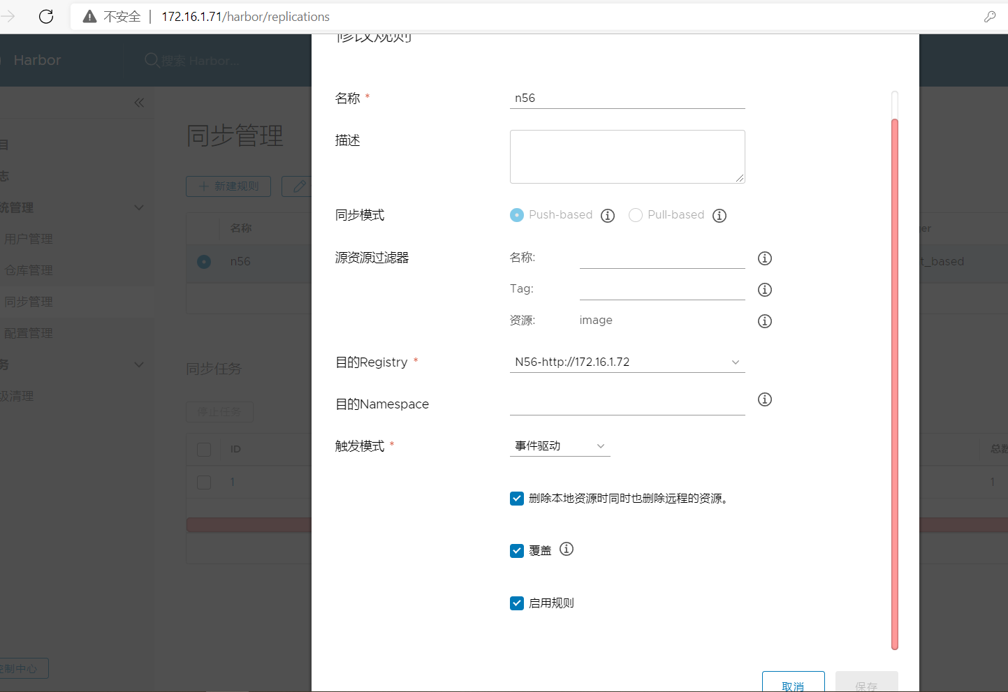 4. 2台harbor做仓库同步,配置如下: