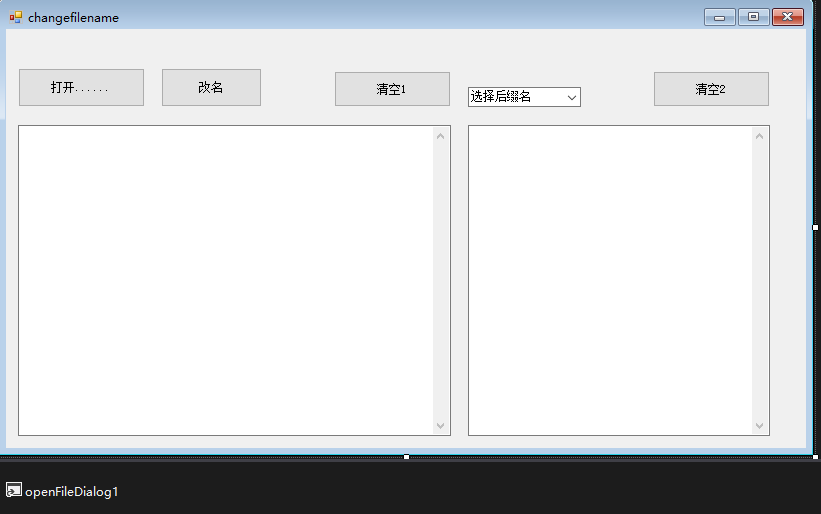 在winform中拖四个button控件、两个textbox控件、一个combobox控件、一个openfiledialog控件。如图