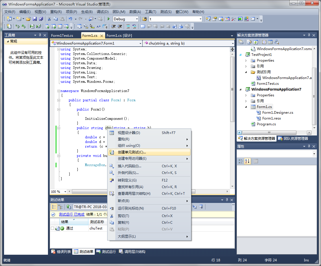 在需要测试的部分右键选择创建单元测试;