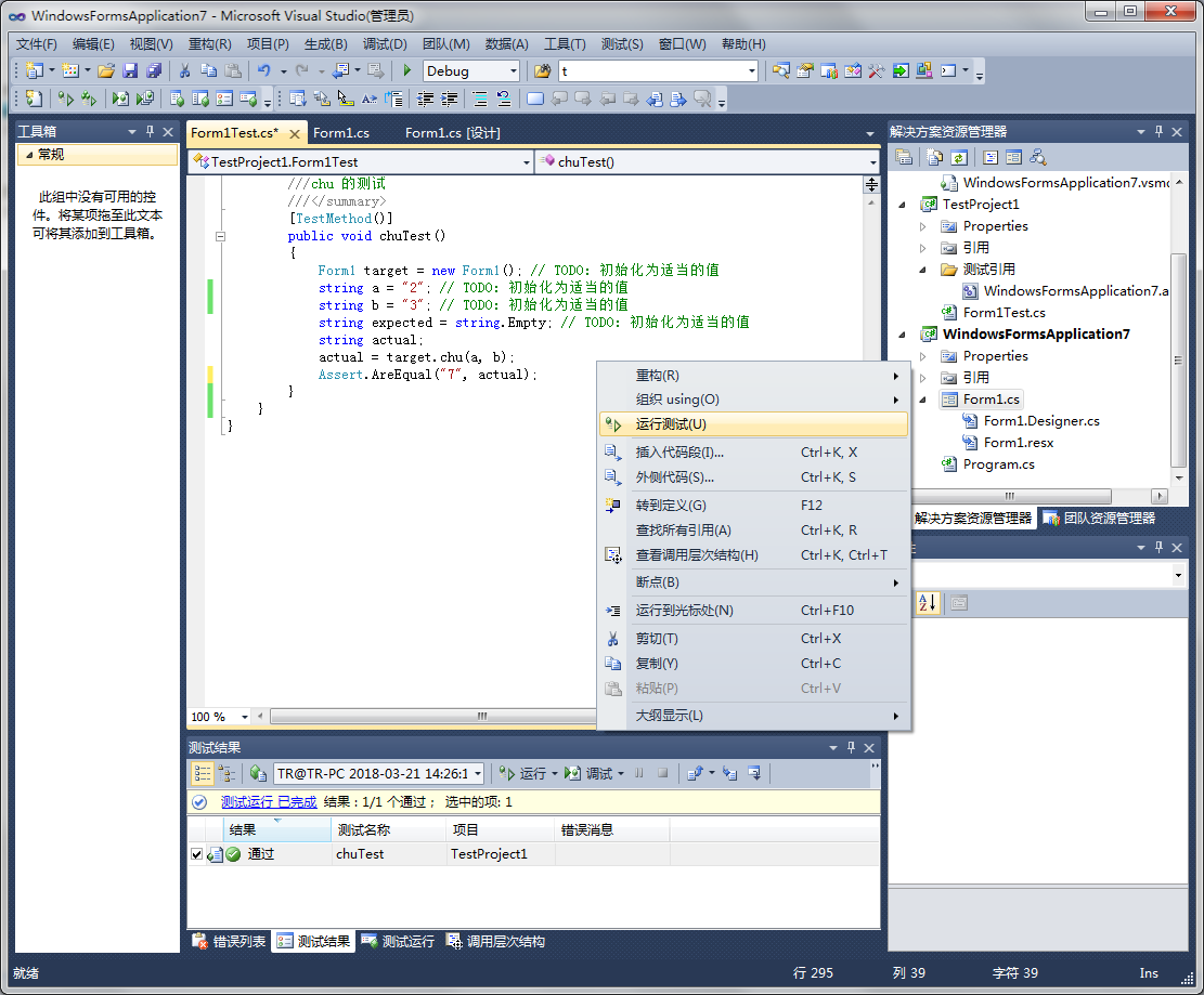 将预期数据改为“7”后右键运行测试;