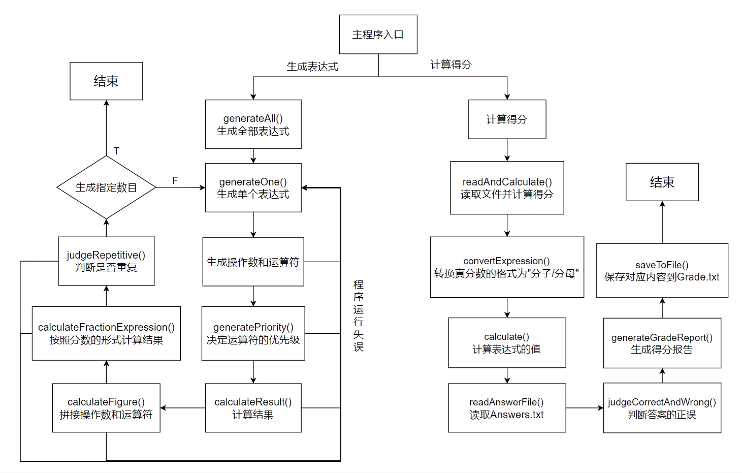 粗略看下来,先站在宏观角度审视题目,我需要构造一个四则运算的表达式,存入Exercises.txt,然后计算出每道题的答案,存入Answers.txt文件中。前面完成了创造和计算功能,后面还要实现检验对错功能。按照生成的Exercis.txt计算结果,并且写入MyAnswers.txt,判断MyAnswers.txt的正确的题目数目,并写入Grade.txt。