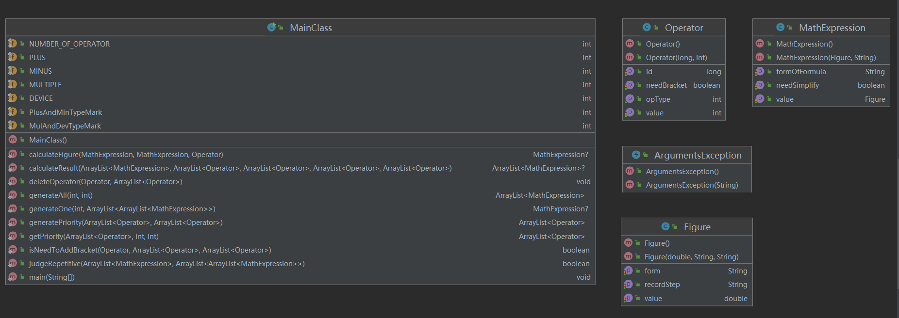 而这个地方我使用的MathExpression类就恰好能解决这个问题,每次有一个运算符参与计算就会生成一个MathExpression对象,而这个对象正好记录了这次参与运算的操作数,避免重复其实是指