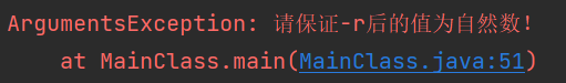 ArgumentsException RException = new ArgumentsException("请保证-r后的值为自然数!");