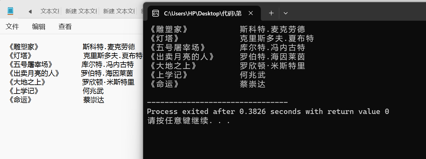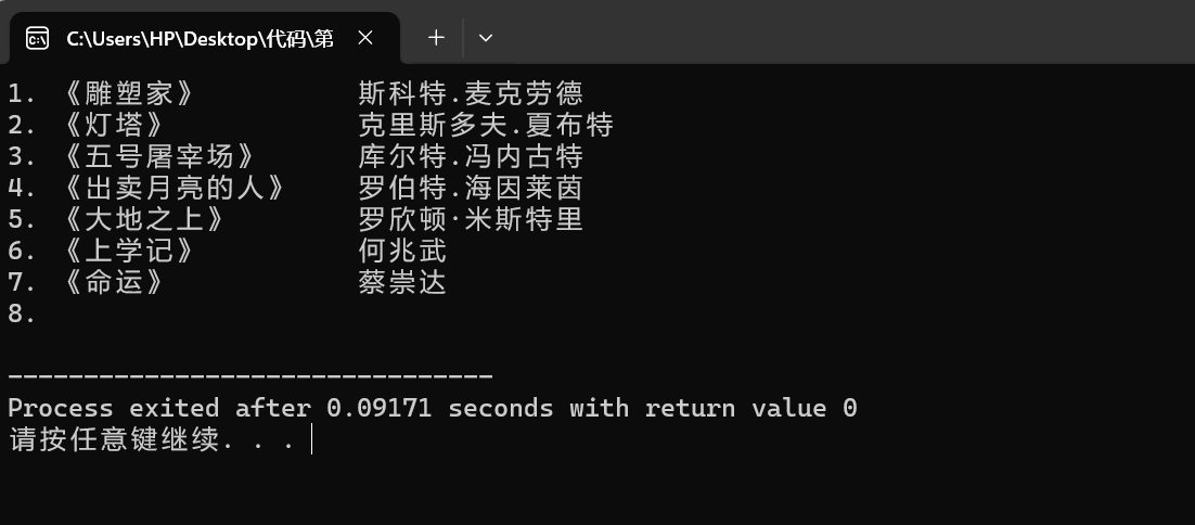 // 从文本文件data1.txt中读取图书信息,并打印输出到屏幕