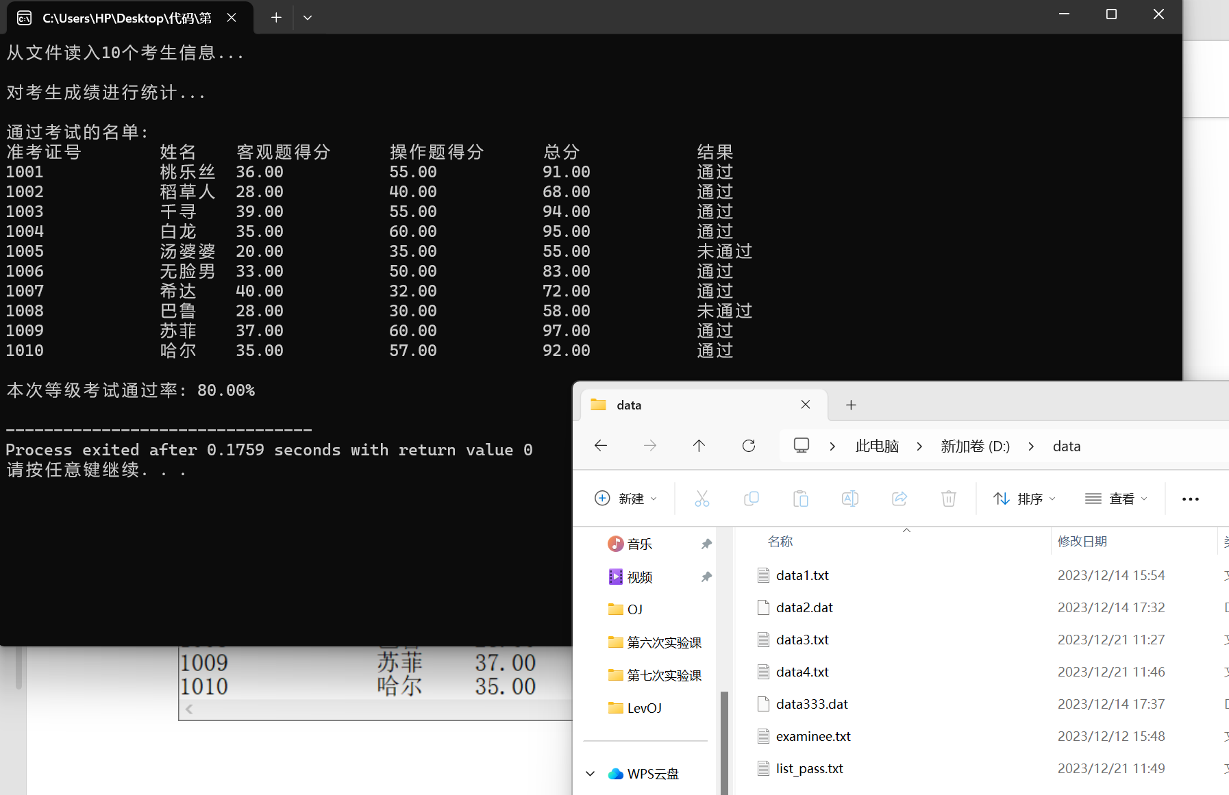 // 把通过考试的考生完整信息写入文件list_pass.txt