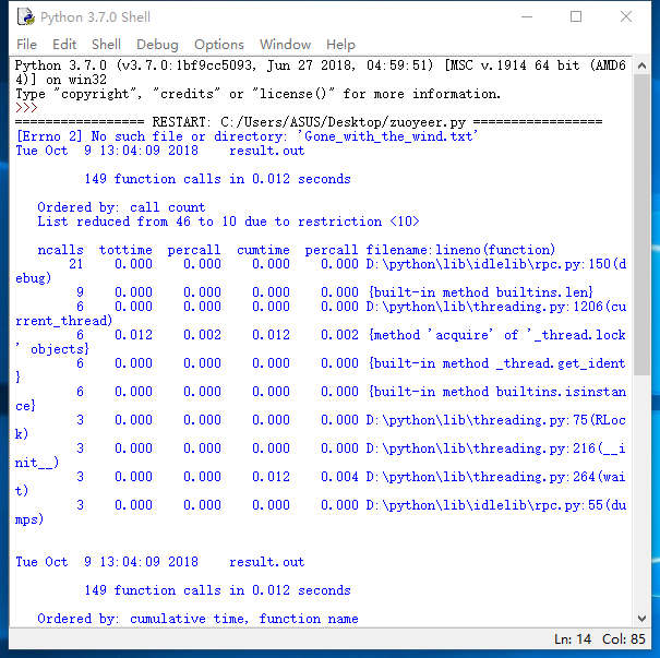 p.strip_dirs().sort_stats("cumulative").print_stats() # 按执行时间次数排序